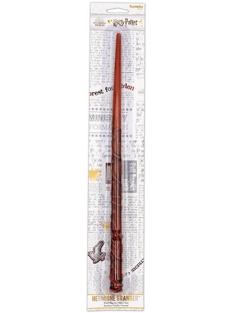 Hermine Granger zeichnet sich durch ihre unglaubliche Intelligenz und ihren perfektionistischen Charakter aus. Abgesehen davon, dass Hermine die erste ihrer Klasse ist und fast in Ravenclaw eingetreten ist, beweist sie ihre Intelligenz bei vielen Gelegenheiten in der bekannten Bücherreihe. Sie demonstriert es in Harry Potter und der Stein der Weisen, indem sie das Rätsel von Severus Snape mit kalter Logik aufdeckt oder in der Geheimen Kammer das Rätsel von Severus Snape entdeckt und vermutet, dass die Kreatur, die sich zwischen den Rohren versteckt hatte, ein Basilisk war. Und das sind nur einige ihrer großartigen Momente in der gesamten Saga. Wenn du dich in diese intelligente Zauberin verwandeln willst, kannst du mit diesem leuchtenden Hermine Granger Zauberstab made by Funidelia Zaubersprüche auf die vorzüglichste Art und Weise beschwören, wie Granger es in der gesamten Saga tut. Der Hermine Zauberstab, den du brauchst, um bei Gryffindor aufgenommen zu werden.
